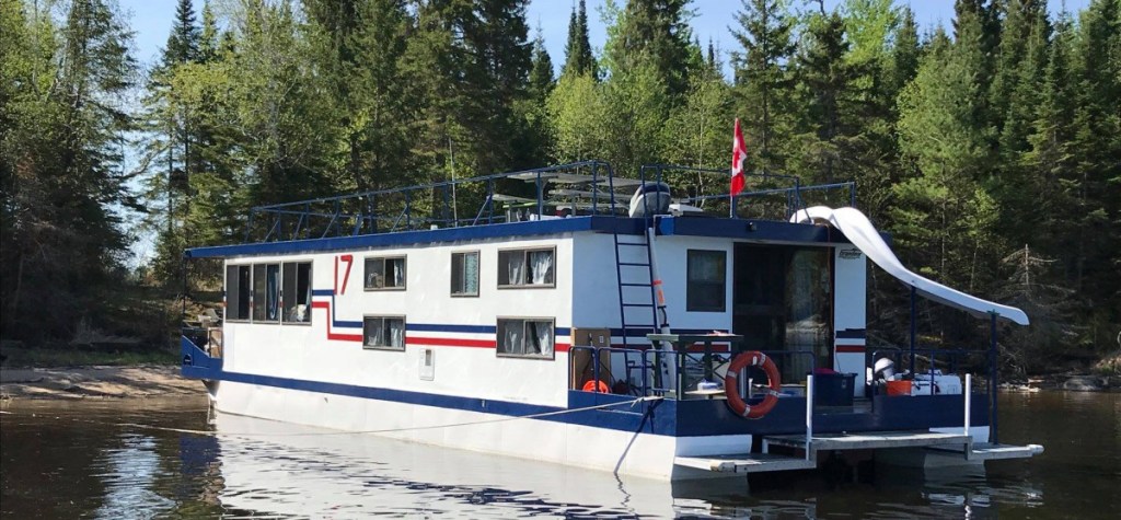 Our Ontario Wilderness Houseboat base is located at Gill’s Morson Marina on Hanson Bay near the end of HWY 621. Our friendly, courteous staff will help you load up and get acquainted with the equipment on board your floating lodge. A marine radio will keep you in touch with our base station as well as the weather. We will spend time with you studying the detailed lake chart; suggesting celebrated fishing spots, and instructions on how to best secure your craft for the night. Once you’ve completed your orientation, you’re the captain as you cruise Lake of the Woods!